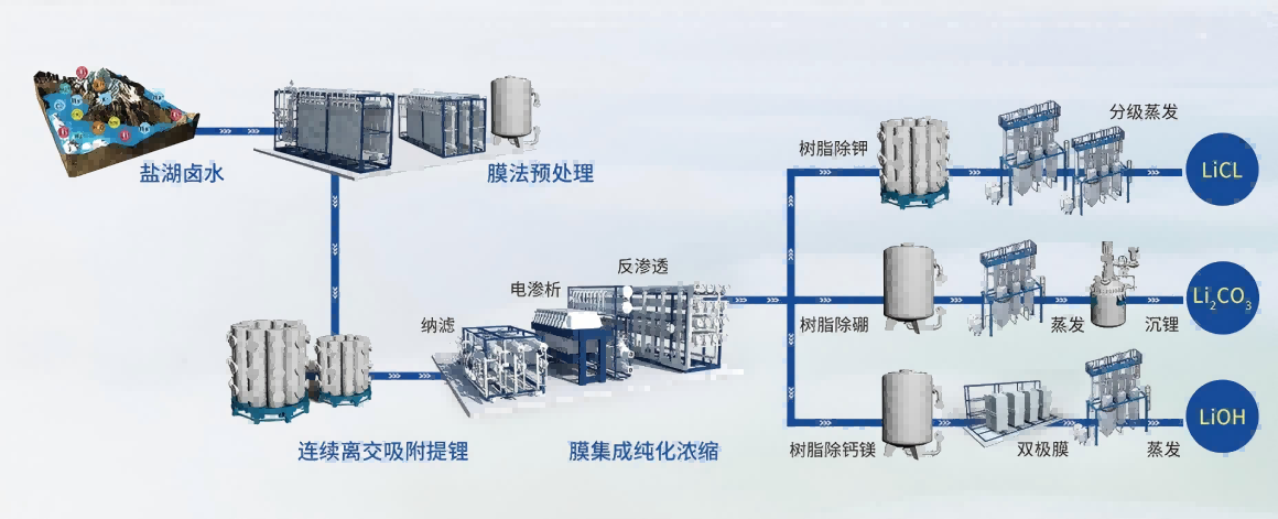 1. 適用範圍廣,可實現Li含量大於100 ppm鹽湖鹵水或其他含鋰水資源的提鋰