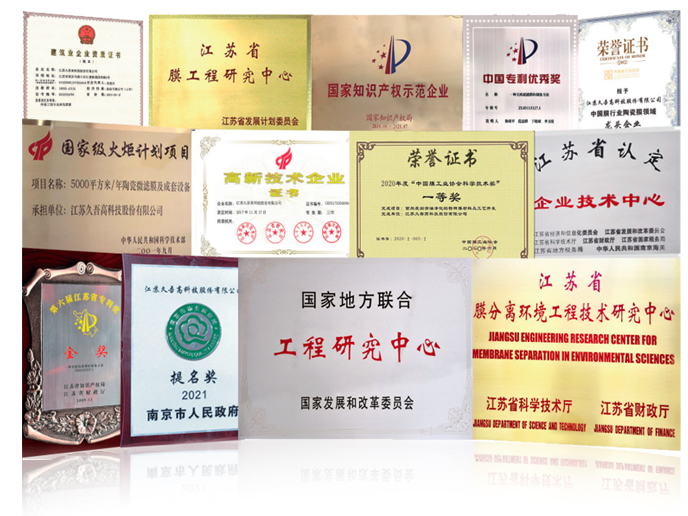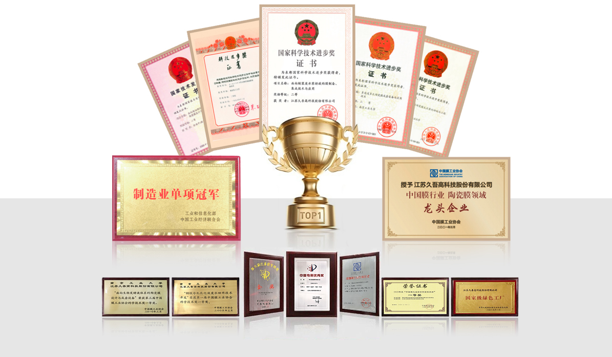 公司先後獲得四次國家科技進步獎、一次國家技術發明獎公司陶瓷濾膜產品及成套裝備
